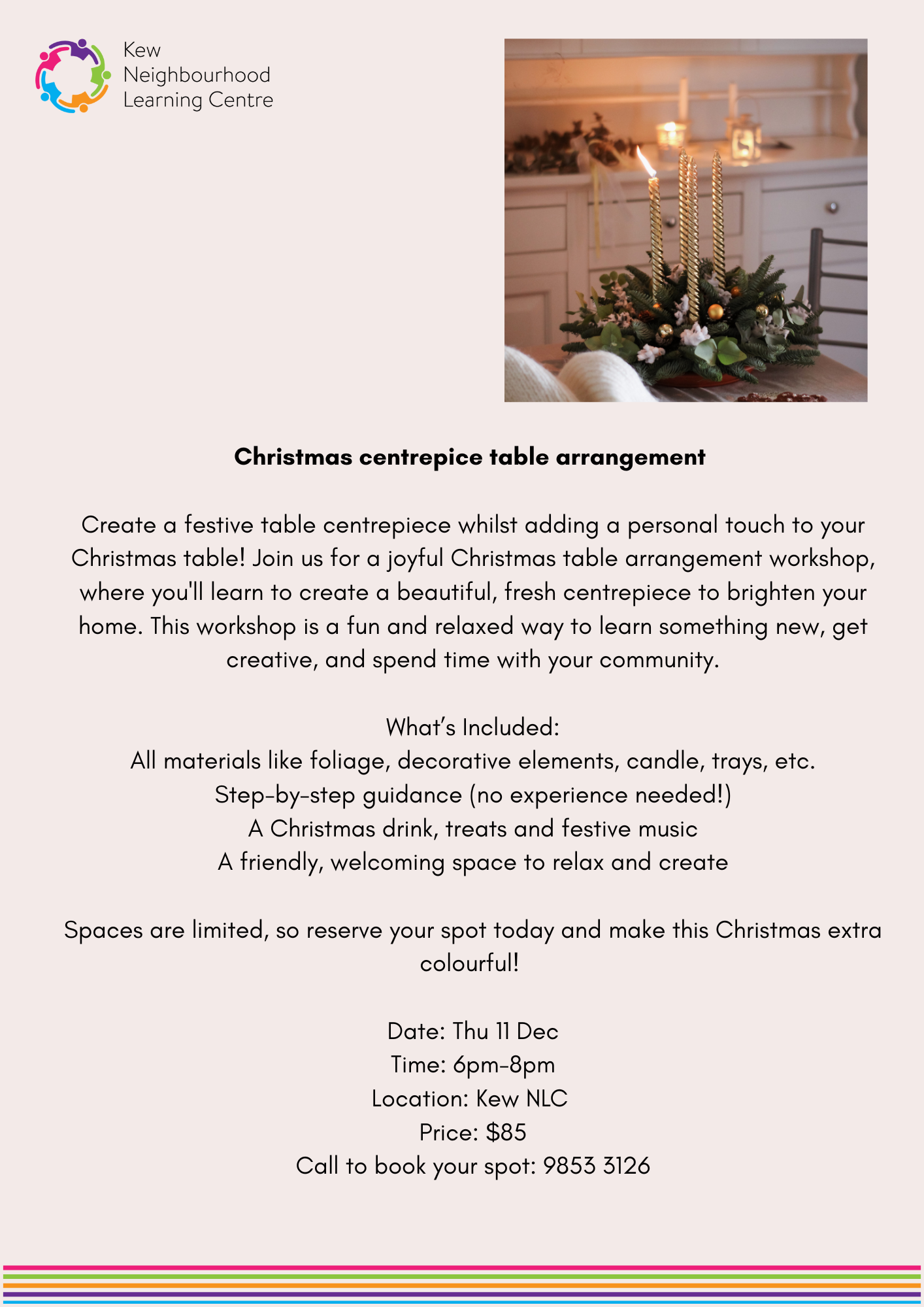 Workshop – Christmas centerpiece table arrangement